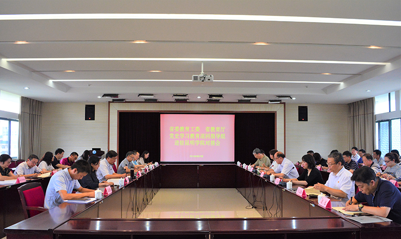 6月25日,省委教育工委、省教育厅党史学习教育第七巡回指导组进驻beat365亚洲版官网,对学校党史学习教育工作开展第一轮巡回指导工作。进驻期间,巡回指导组听取工作汇报、进行个别谈话、查阅工作台账、深入职能部门和二级学院检查指导,并召开反馈会。省委教育工委第七巡回指导组组长刘沧山出席进驻对接会并讲话,学校校党委书记金幼和作工作汇报。