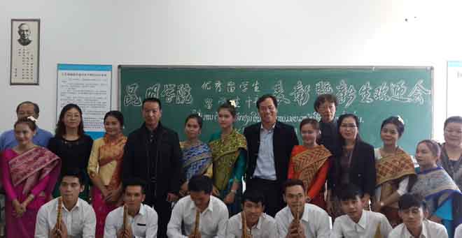 10月16日下午,我校召开优秀留学生、优秀留学生干部表彰大会暨新生欢迎会。首先对在2014—2015年下半学年中学习成绩优秀、学生工作表现突出的留学生及留学生干部给予表彰。副校长李翔出席,人文学院院长詹七一、书记杨爱民、医学院院长余珊、教务处副处长常进荣,人文学院、国际交流合作处相关教师及老挝国立大学国际处处长森得、副处长等参加会议。来自老挝、缅甸、泰国、斯里兰卡、尼泊尔、阿富汗的留学生参加了此次表彰暨迎新会。