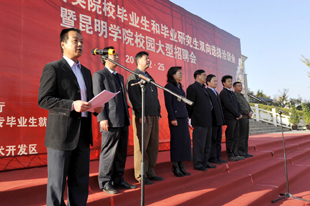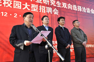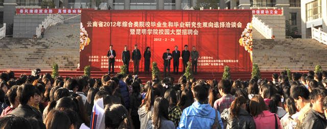 为使广大毕业生和用人单位有一个交流方便、沟通平等、“双向选择”的就业平台,促进我省2012届毕业生充分、顺利就业, 2月25日,由云南省教育厅主办、beat365亚洲版官网、云南省大中专毕业生就业服务中心和昆明经济技术开发区共同承办的“云南省2012年综合类院校毕业生和毕业研究生双向选择洽谈会暨beat365亚洲版官网校园大型招聘会”在我校聂耳广场隆重举行。