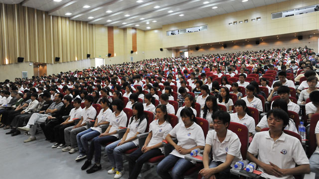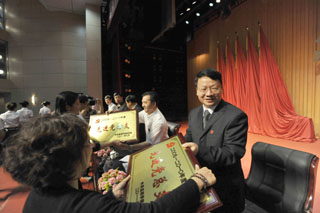 6月24日上午,我校在洋浦新校区学生会堂隆重召开庆祝中国共产党成立90周年大会。全体校领导,各党总支、直属党支部师生党员代表,新党员和入党积极分子共1300余人参加了庆祝大会。大会由校党委副书记、校长陈世波主持。