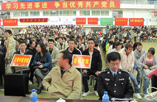 | 10月22日(星期五)上午,我院40名党员师生参加了由中共云南省委高校工委组织的“云岭先锋 创先争优——优秀共产党员”事迹巡回报告会。全院21个教学院系党总支、1个市级党的基层组织建设示范点、8个院级创先争优活动示范点创建单位的部分中层干部、师生党员代表及我院组织、宣传、统战、纪委、党校、工会、团委、学生处、创先办等部门负责人和职工代表参加了报告会。