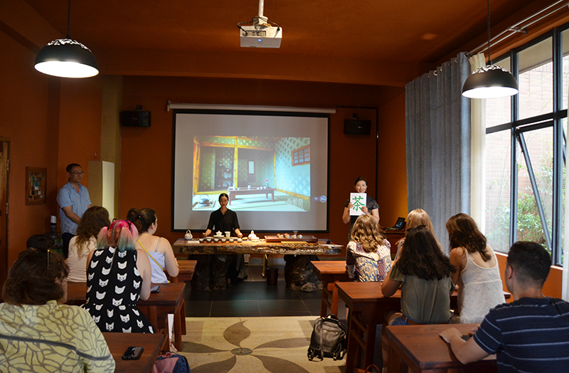 随后,我校安排了极富中国文化特色的茶艺讲座作为传统文化的展示,同时让其亲身体验中国茶的烹制过程。到我校交流的该师生团队在了解中华茶文化的博大精深和中国人待客之道的同时,还切身地体会到了中华茶艺的优美及生活哲理。该活动不仅受到了外经济贸易大学的肯定,而且还得到了希腊雅典商务孔子学院师生的高度赞扬。