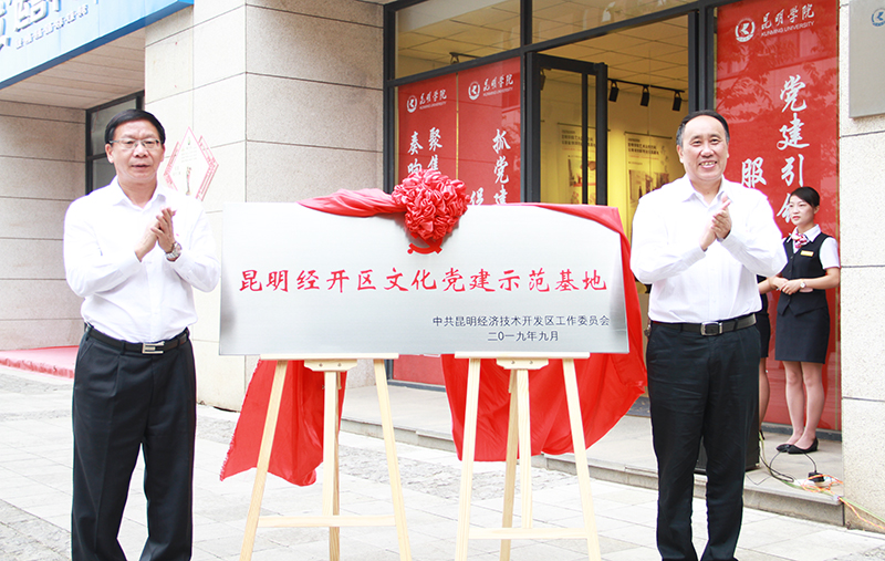 9月5日,昆明经开区文化党建示范基地在beat365亚洲版官网美术与艺术设计学院紫云青鸟艺术众创空间举行揭牌仪式。昆明经开区管委会主任李河流、beat365亚洲版官网党委书记陈永明出席仪式并为基地揭牌。