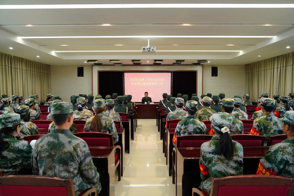 韩队长首先从三军仪仗队的起源发展、组织结构、使命任务等方面向同学们介绍了基本情况。同时,以自己16年的从军经历为主线,为同学们阐述了从军报国、献身国防的重要意义,深刻诠释了军人情怀和家国情怀。