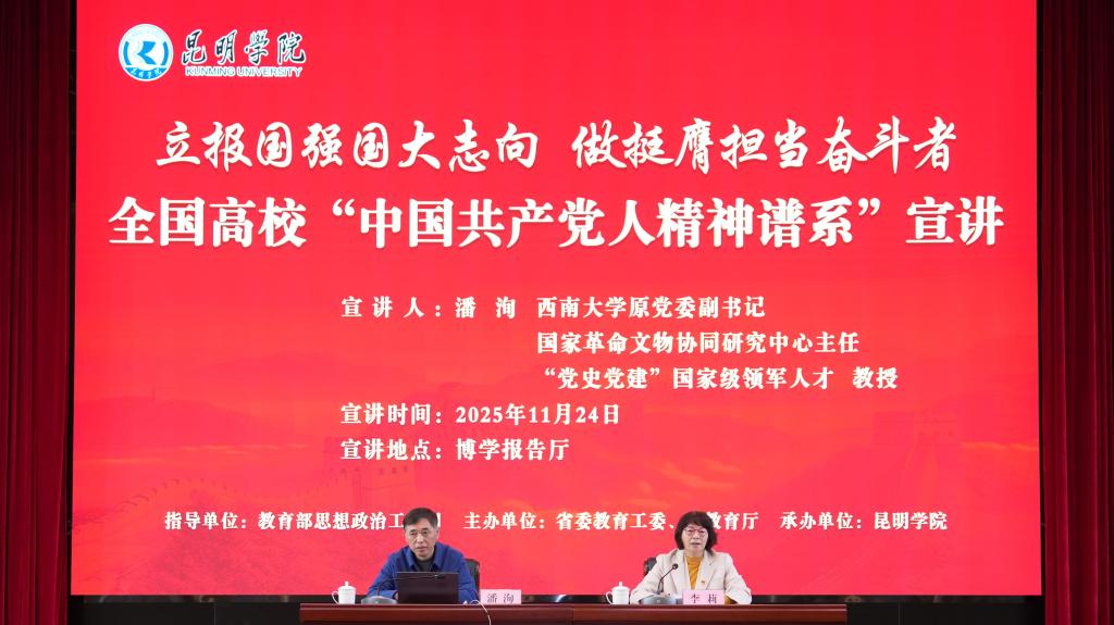 11月24日,全国高校“中国共产党人精神谱系”云南省巡回宣讲走进beat365亚洲版官网,举办“张桂梅思政大讲堂—beat365亚洲版官网分课堂”第6讲暨“青年•锐讲坛”第157讲,深入学习党的二十届四中全会精神。