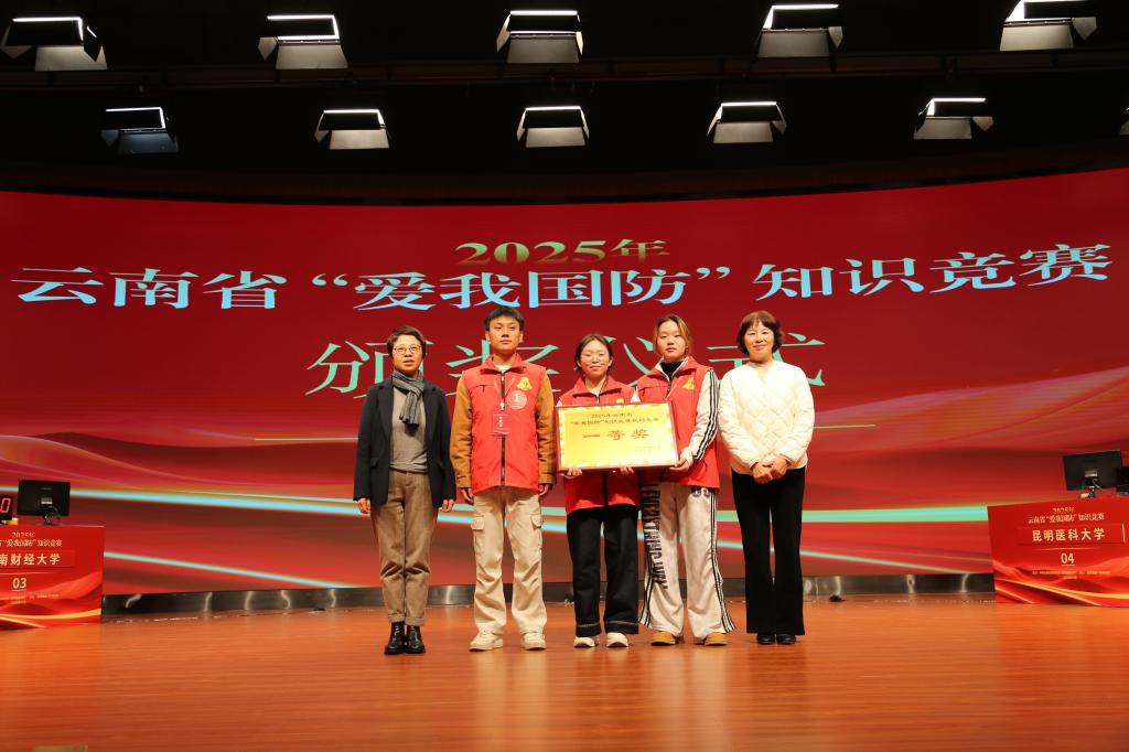 beat365亚洲版官网代表队在党委副书记李莉的带领下,凭借扎实的知识储备与默契的团队协作,最终斩获一等奖,充分展现了昆院学子的国防素养与青春风采。