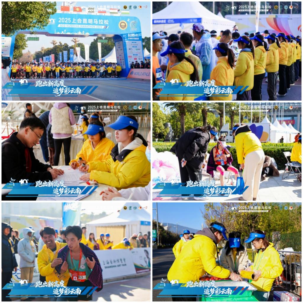 为确保志愿服务质量,自11月22日起,全体志愿者接受了涵盖赛事规则、岗位职责、应急处理、沟通礼仪等内容的六场系统化专业培训。培训期间,志愿者们还积极参与了赛事物料的分装、发放及现场踏勘等准备工作,全面熟悉了服务流程与环境,有效提升了专业服务能力。赛事当日凌晨,3335名志愿者已全部集结完毕,整装待发。赛事期间,他们坚守在起终点服务、赛道指引、存取包服务、补给分发、秩序维护、医疗协助等关键岗位,以真诚的微笑、熟练的操作和有序的协作有力保障了赛事各环节顺畅运行,赢得了组委会、参赛选手及各界来宾的广泛赞誉。更值得骄傲的是,志愿者代表在赛事结束后获得了上海合作组织秘书长亲手颁发的感谢信。这份殊荣不仅是对志愿者辛勤付出的高度肯定,更是昆院青年昂扬风采与时代担当的生动体现。