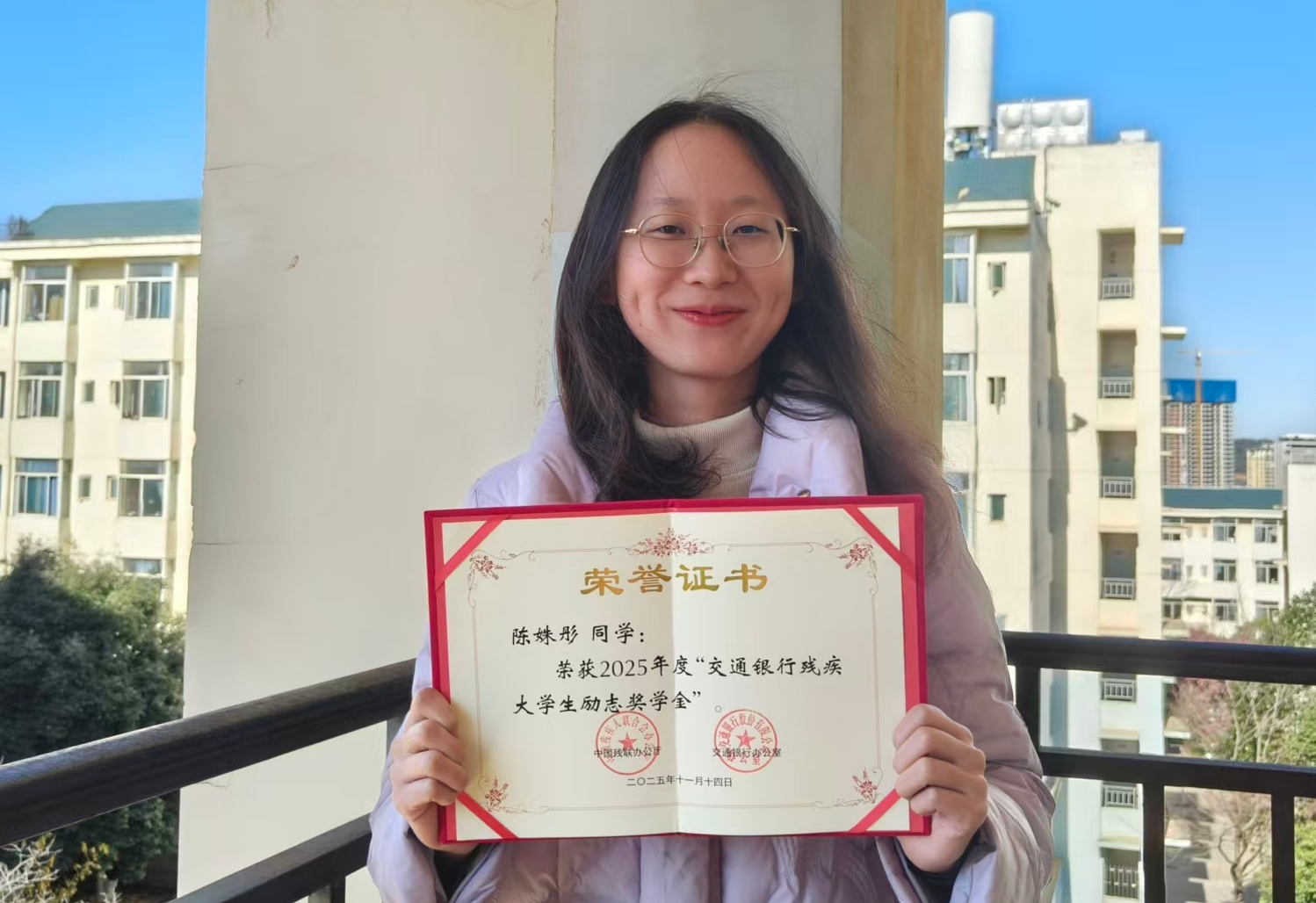 近日,2025年度“交通银行残疾大学生励志奖学金”评选结果正式公布,我校学子陈姝彤凭借不懈努力与出色的综合表现脱颖而出成功入选。