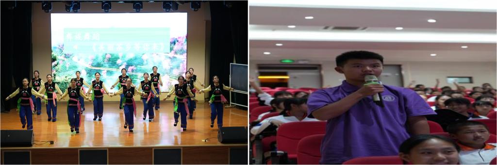 (彝族歌舞表演现场) (主持人与学生观众互动现场)
