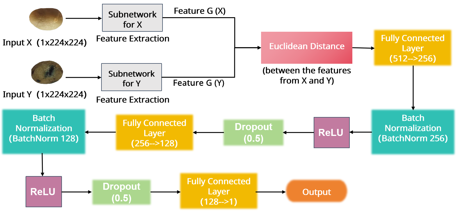 本研究针对咖啡豆缺陷检测中训练样本有限、细微缺陷难以识别的关键科学问题,首次将基于人工智能孪生神经网络的小样本学习方法应用于该领域。研究团队采用双分支ResNet18架构,通过共享权重和相似度学习机制实现缺陷识别,构建了包含云南省普洱、临沧、保山三大产区3,220张图像的数据集,涵盖正常豆及黑豆、酸豆、干瘪豆、霉变豆、漂浮豆、带壳豆六种常见缺陷类型。实验结果表明,该模型识别准确率达94.95%,显著优于传统卷积神经网络(74.35%)和支持向量机(64.28%)方法;单张图像处理速度仅需34毫秒,满足了工业实时检测需求。该方法有效降低了对大规模标注数据的依赖,为资源受限的生产环境提供了可行的方案。