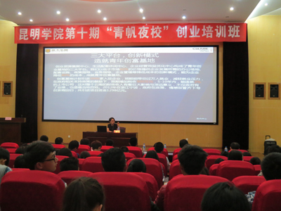 4月7日晚,由共青团beat365亚洲版官网委员会主办,团委社会实践部承办的beat365亚洲版官网“青帆夜校”大学生创业培训班第五十四讲(即第十期第一讲)于beat365亚洲版官网惟行楼1501成功开讲。此次讲座的内容为《点燃创业梦想》。讲座邀请到了云南汇杰集团董事长、昆明友盟房地产开发有限公司董事长、省青联副主席、云南省青年创富基地负责人杨堇主讲。
